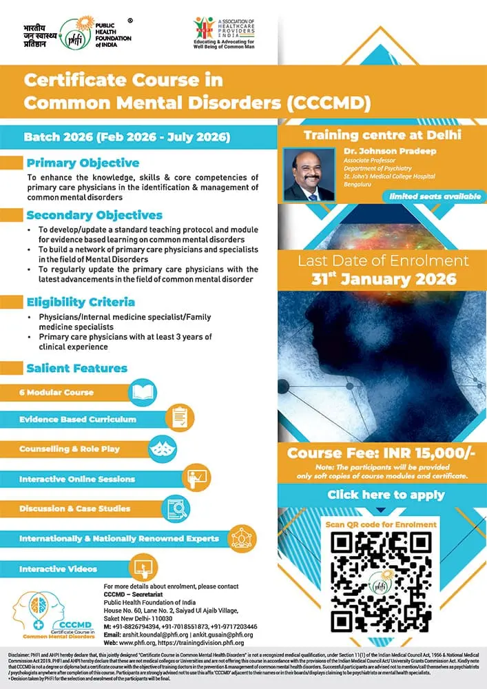 Certificate Course in Common Mental Disorders (CCCMD), Batch - 2025-26