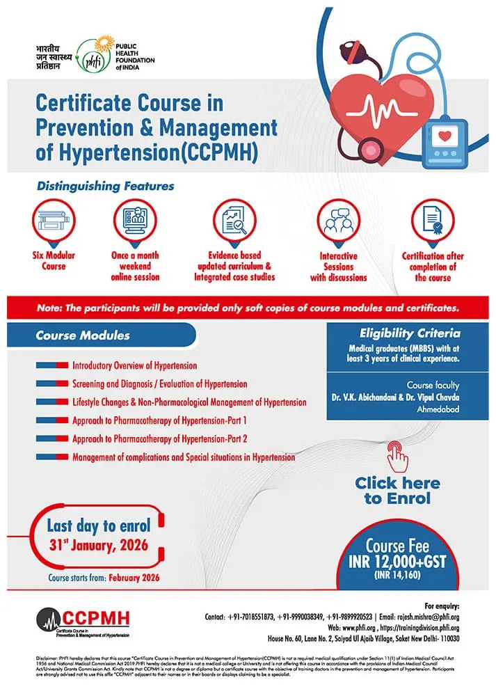 Certificate Course in Prevention and Management of Hypertension (CCPMH), Batch 2026